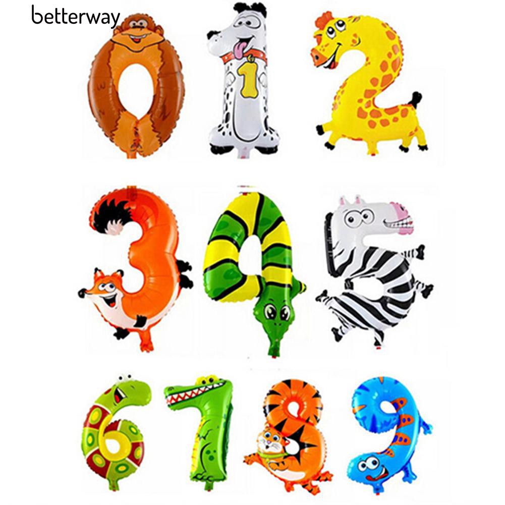 Animal Number Foil Balloons Kids Party Birthday Decor Ballon Gift