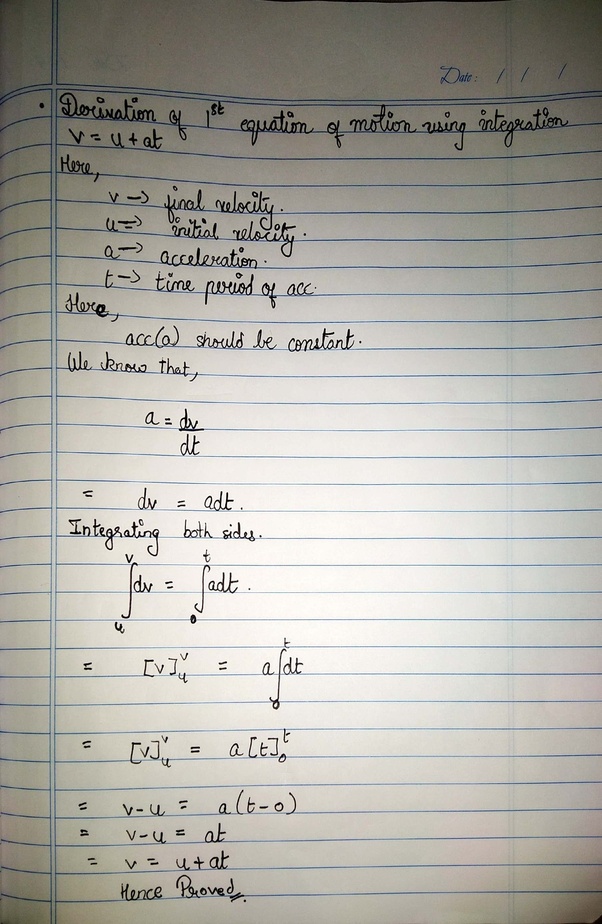 Derive The First Equation Of Motion V U At Using The Velocity Time