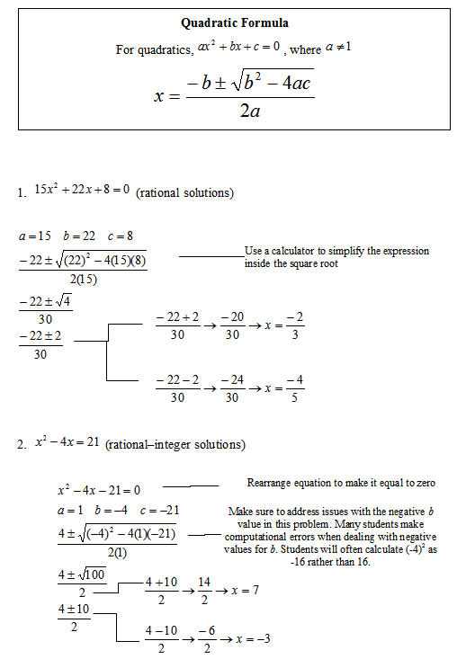 Solving Quadratic Equations Using The Formula Worksheet Answers
